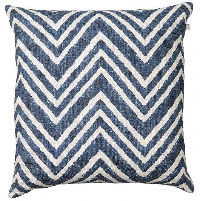 The Blue Chevron pillow by Chhatwal & Jonsson features bold blue and white chevron stripes. Handprinted using silkscreens and traditional methods, each pillow is completely luxurious and unique.