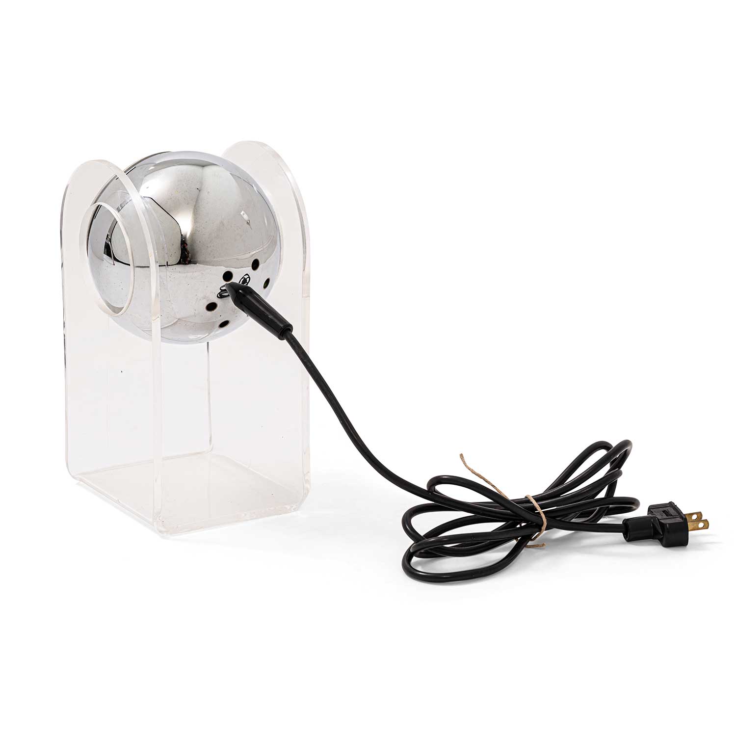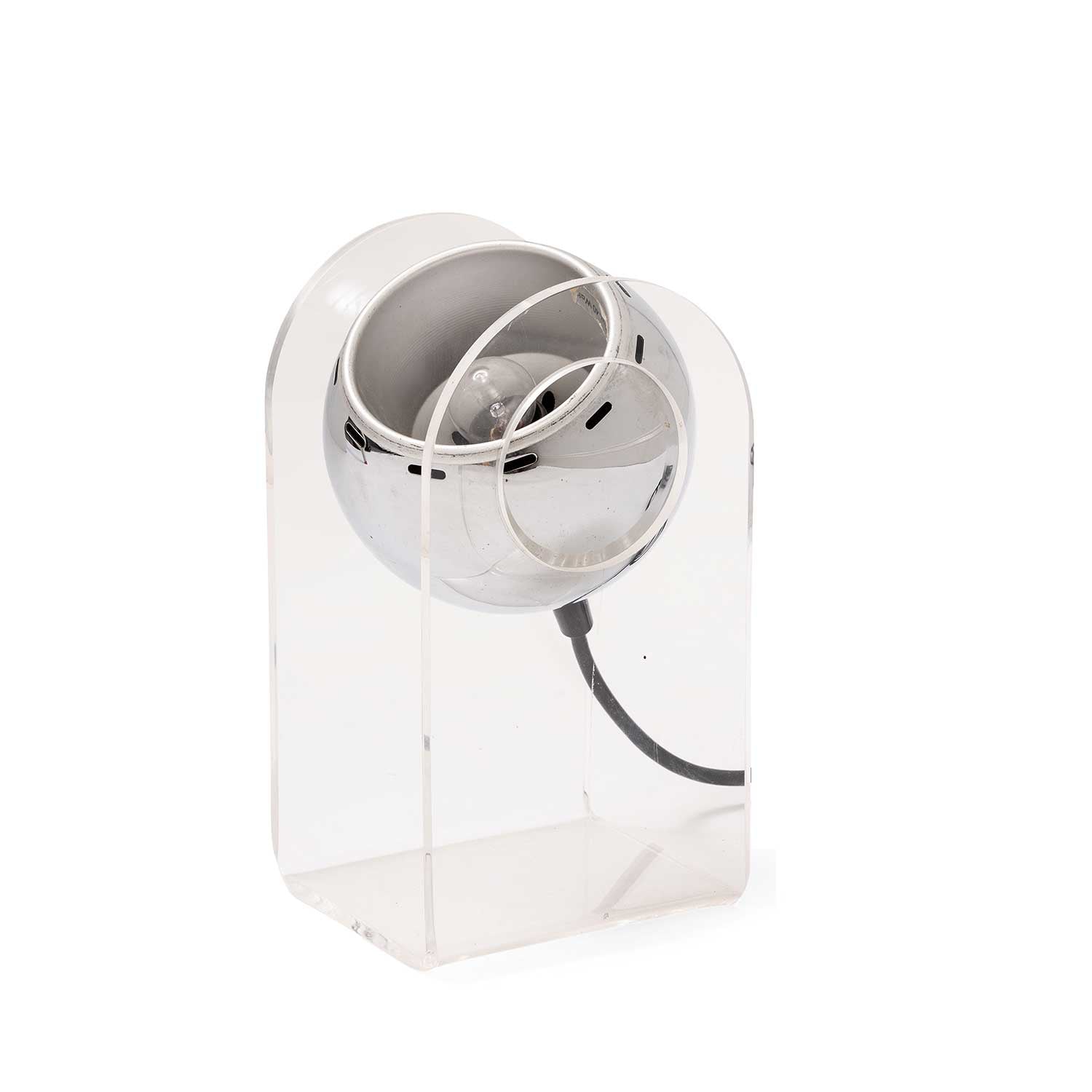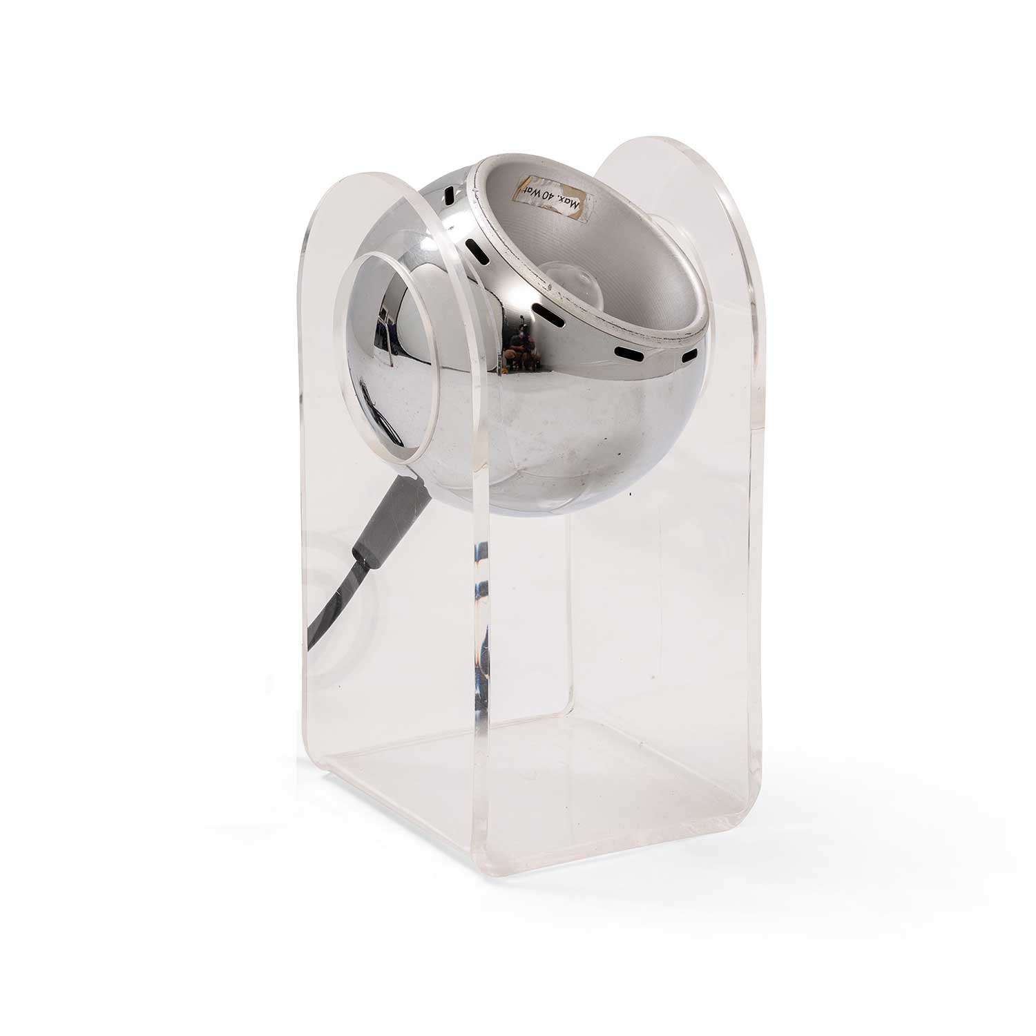 A curved Lucite and chrome eyeball shade swivel table lamp designed by Robert Sonneman for George Kovacs in the 70's.