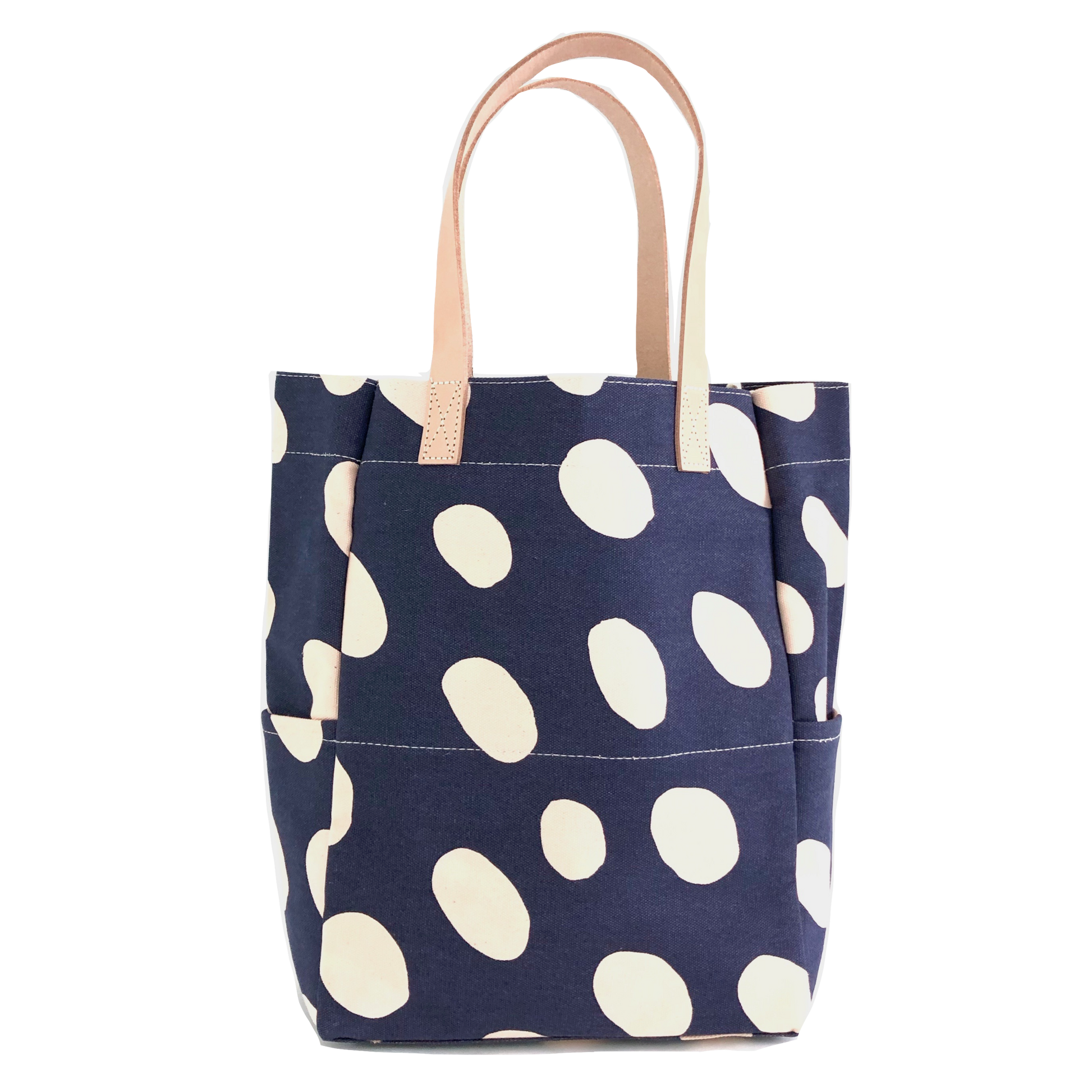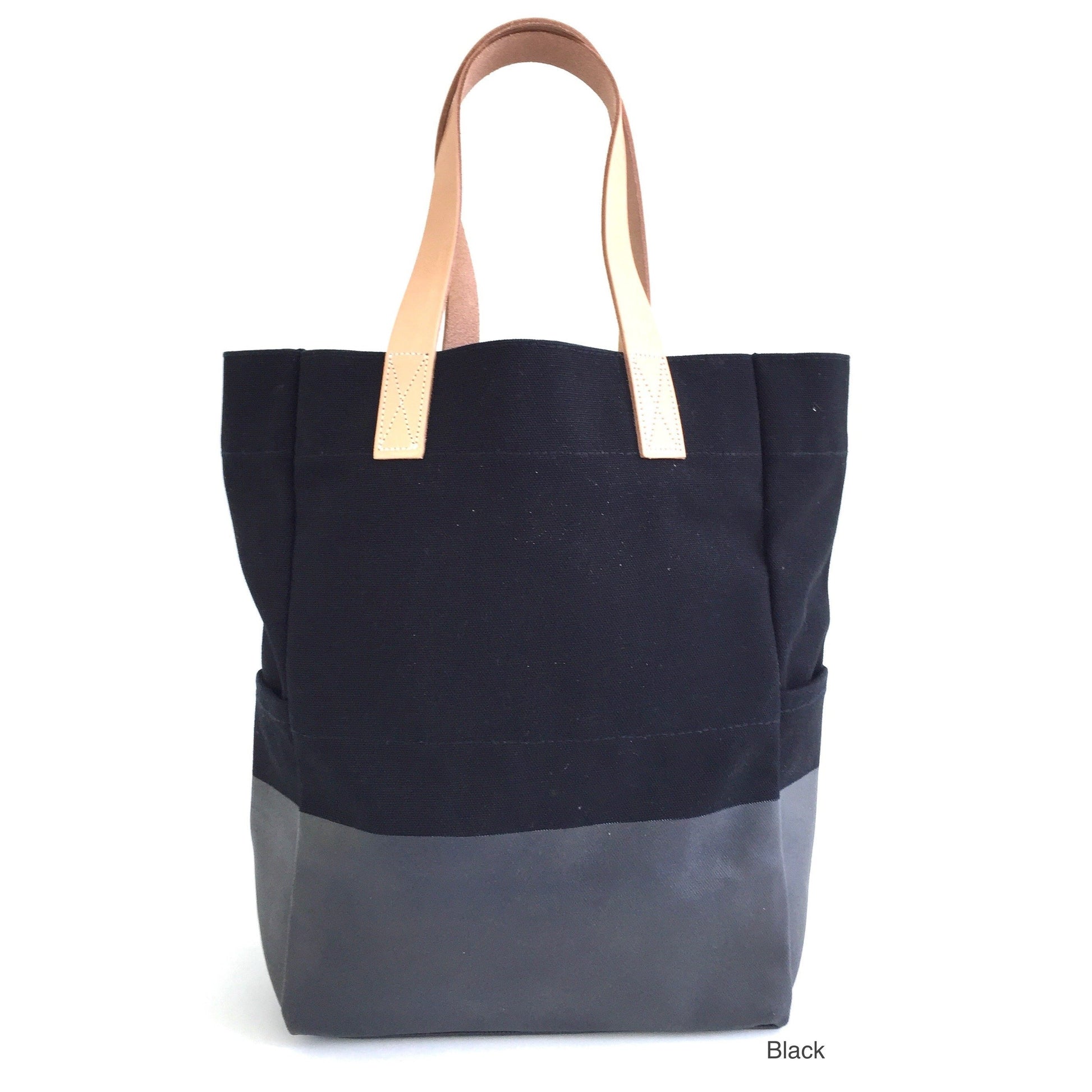 The City Tote is a beautiful bag that lets you carry everyday items in style. It is made of durable 100% cotton heavyweight canvas. It features leather handles, a small zip inside pocket, and two side pockets on the exterior.