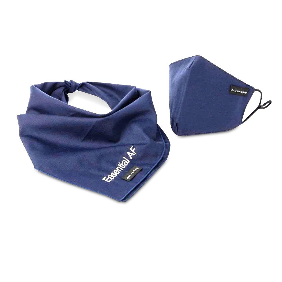 The Daily Walk Pack features a non-medical grade mask for you and a matching "Essential AF" bandana for your dog.