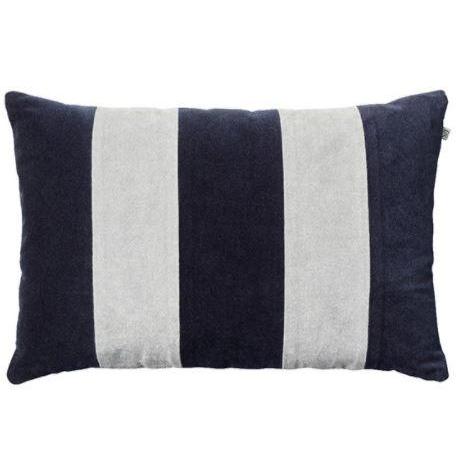 Velvet striped pillow in color Navy/Silver. Dry clean only.