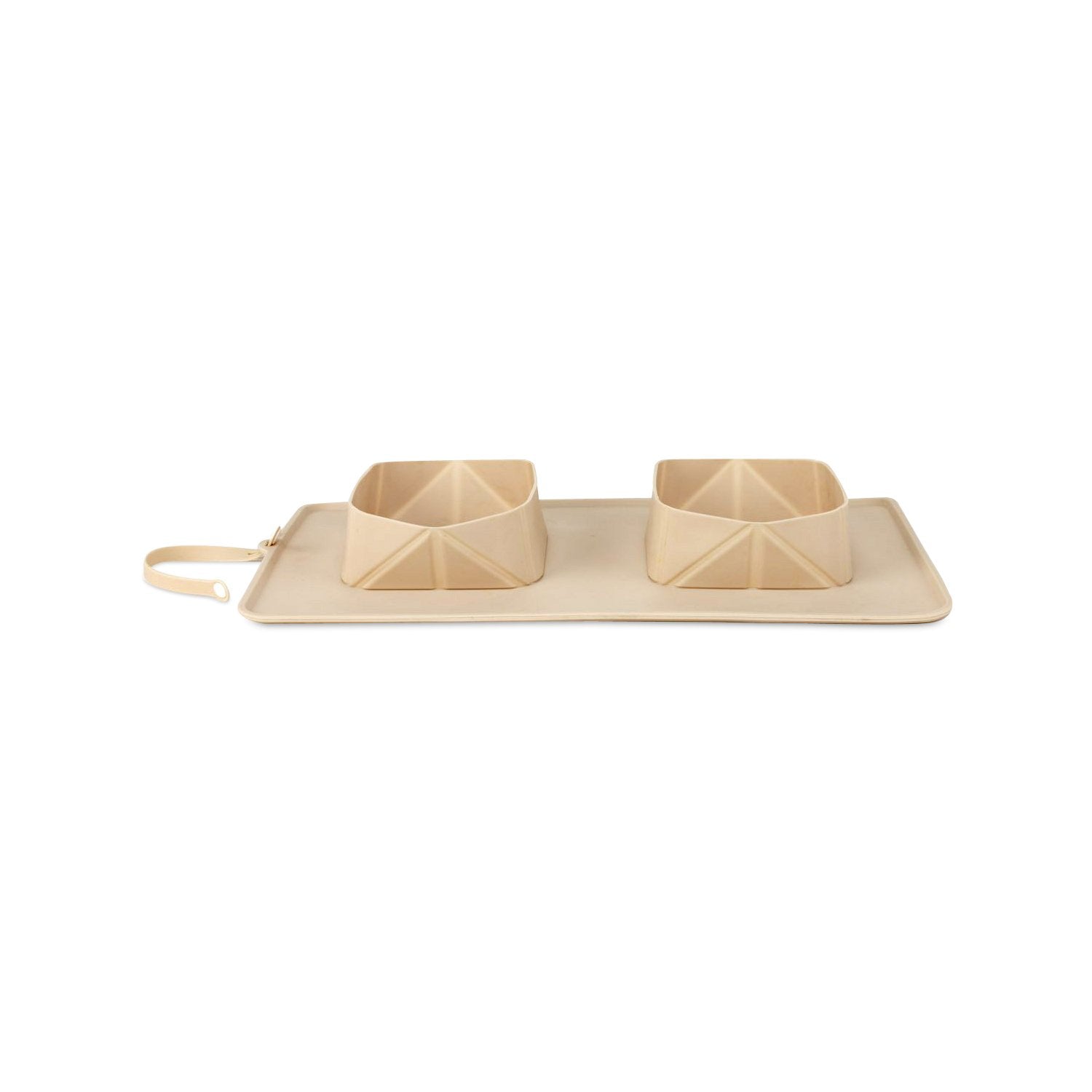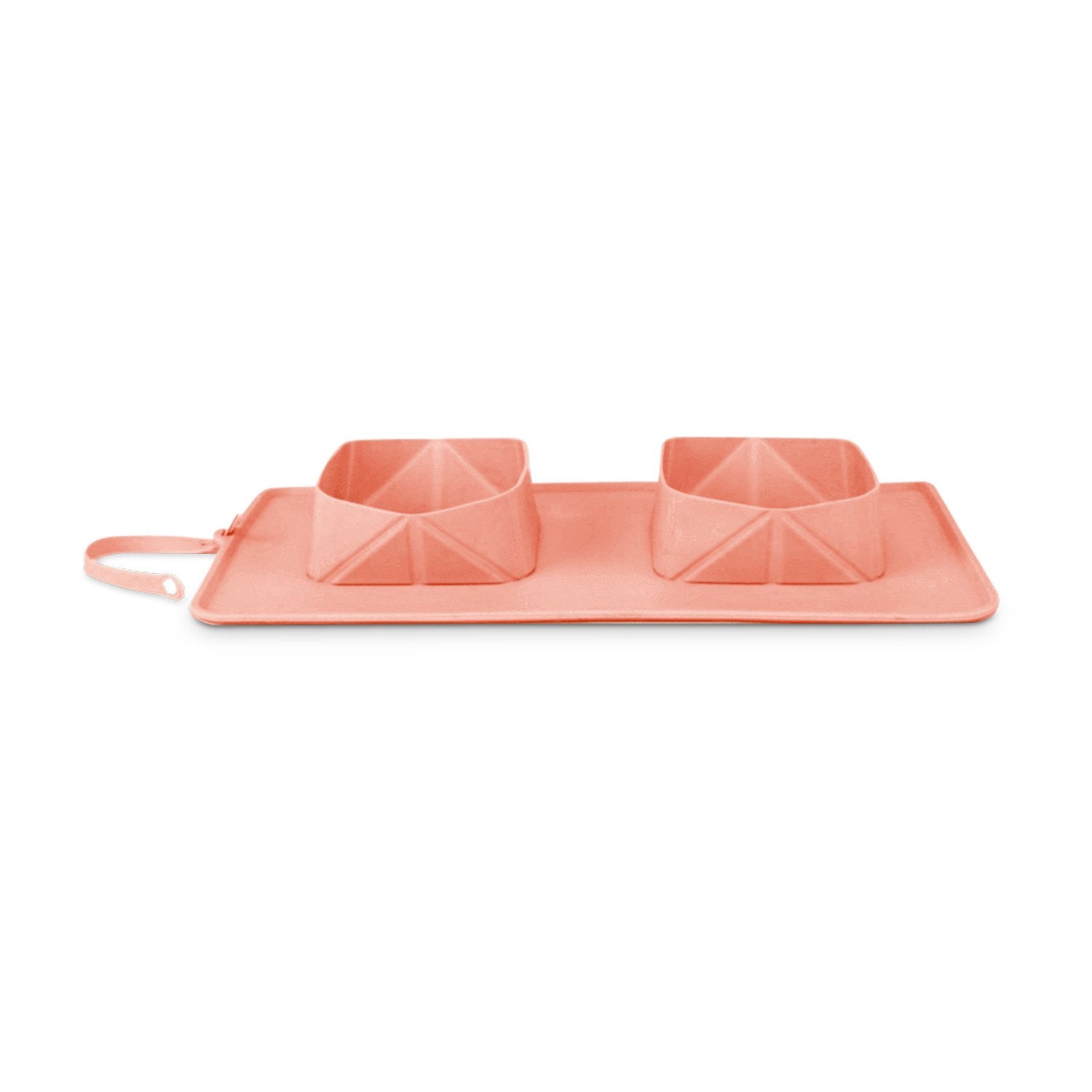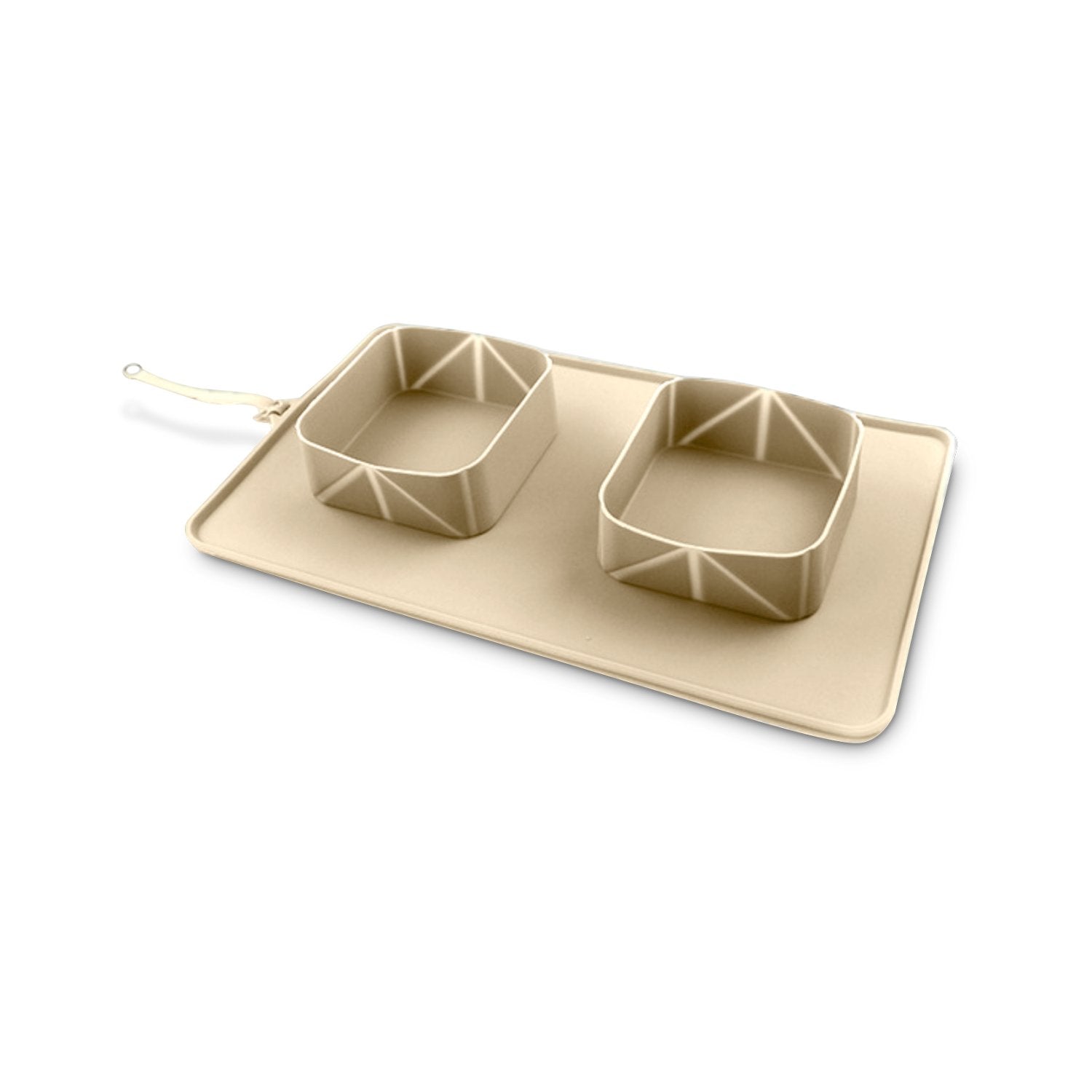 This double bowl is perfect for taking your dog outside to eat and drink. It’s also easy to pack and clean. Made from chic silicon, this collapsible dog bowl rolls up, but can be easily expanded for use in large or small spaces. A silicon loop is attached to makes fastening this item to belts, bags, and even leashes a breeze. We can’t wait to see where you GO!Mat size: 15.4" x 9.3"