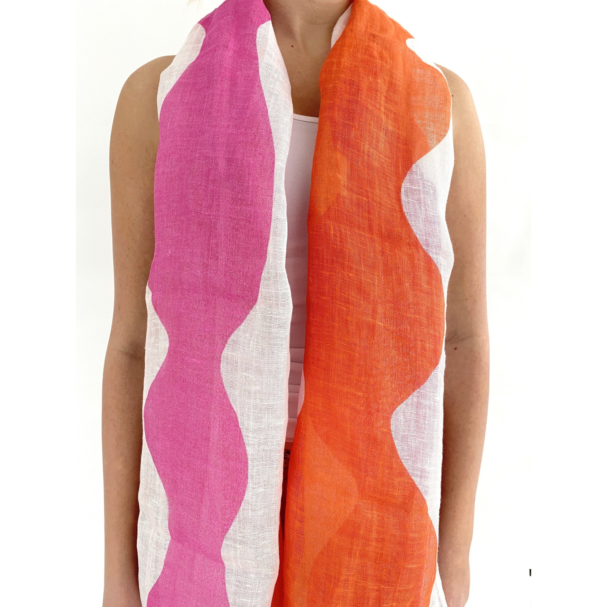 These soft, 100% linen scarves add a modern design element to any outfit.