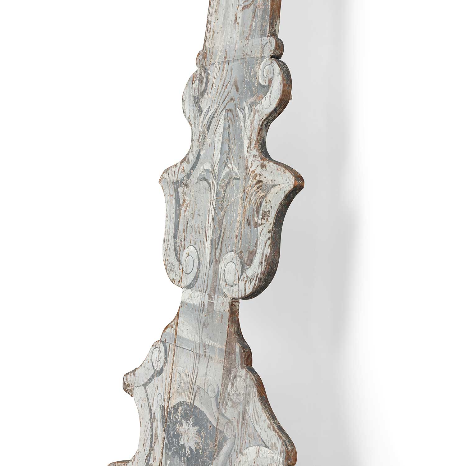 A pair of decoratively painted wooden, grey and white, Italian painted stage set columns. Circa 1890.