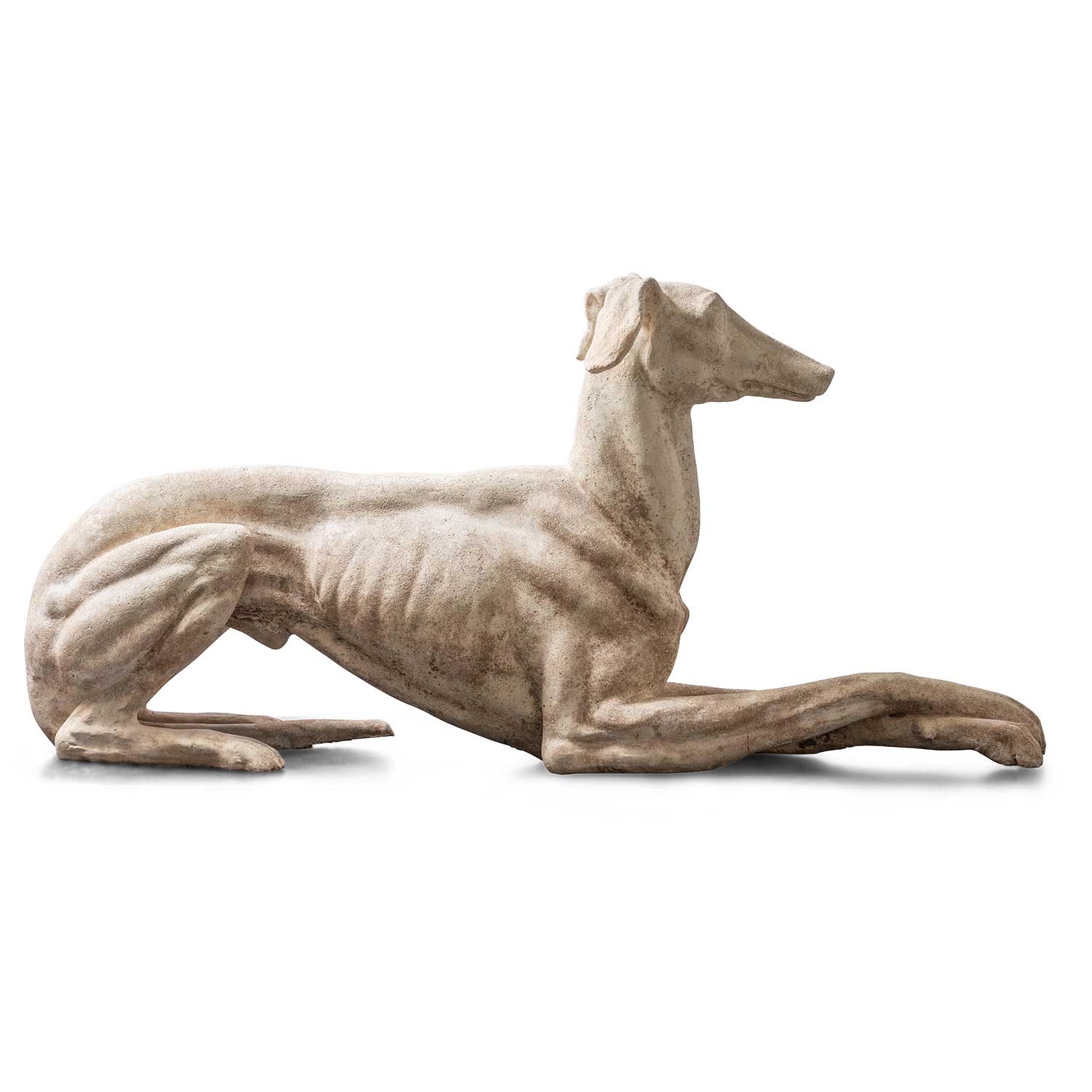 A Pair of Cast Marble Stone Grey Hounds with Metal Stands