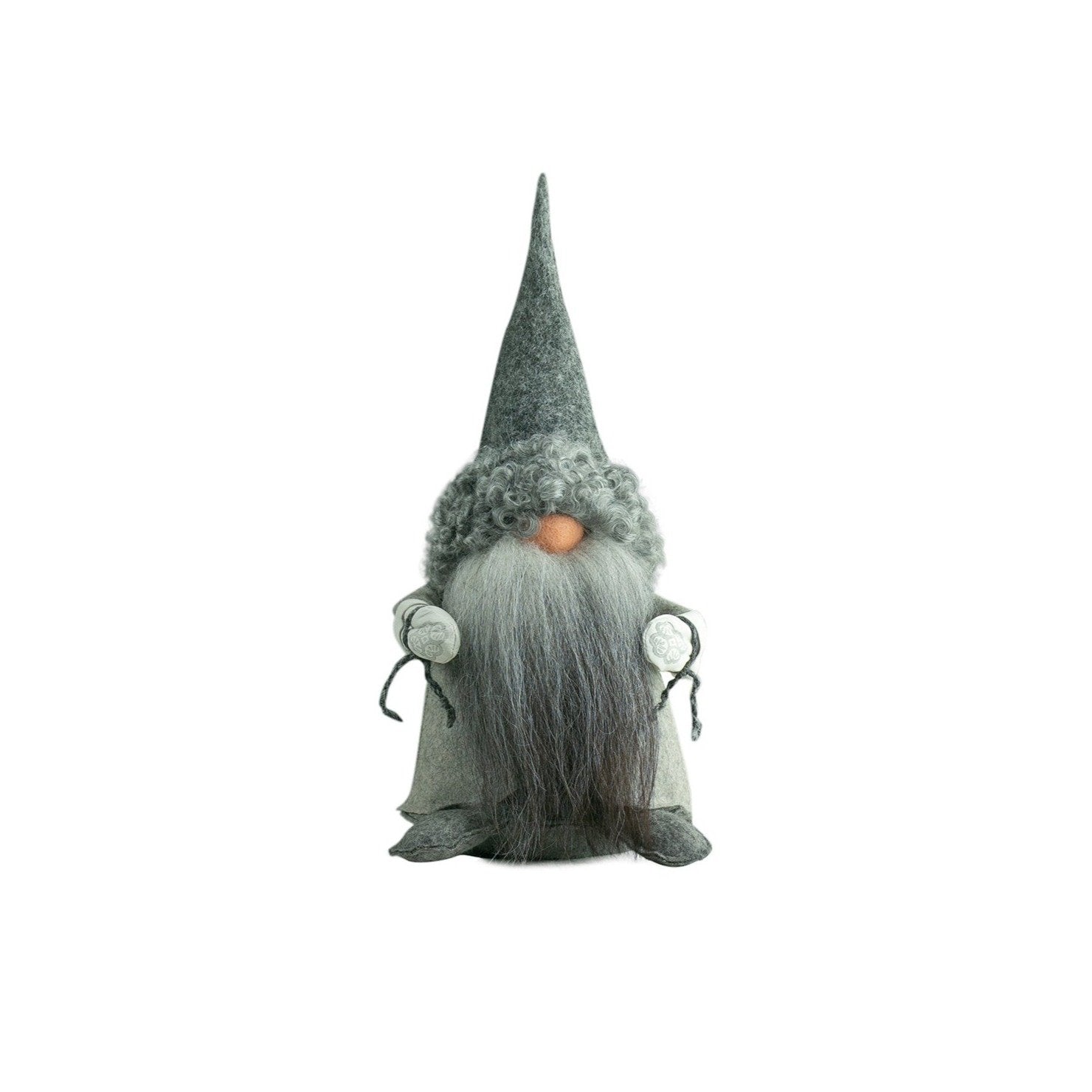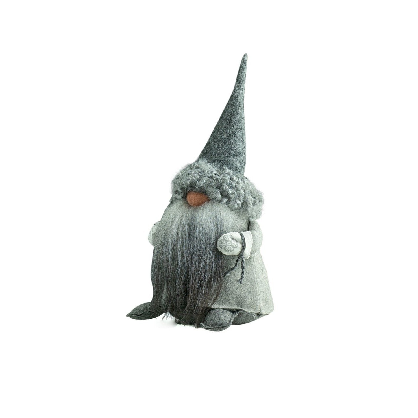 Sigvard is handcrafted in Sweden and has a grey tall cap with Gotlandic sheepskin trim, leather gloves, and a beard made from Icelandic sheepskin.