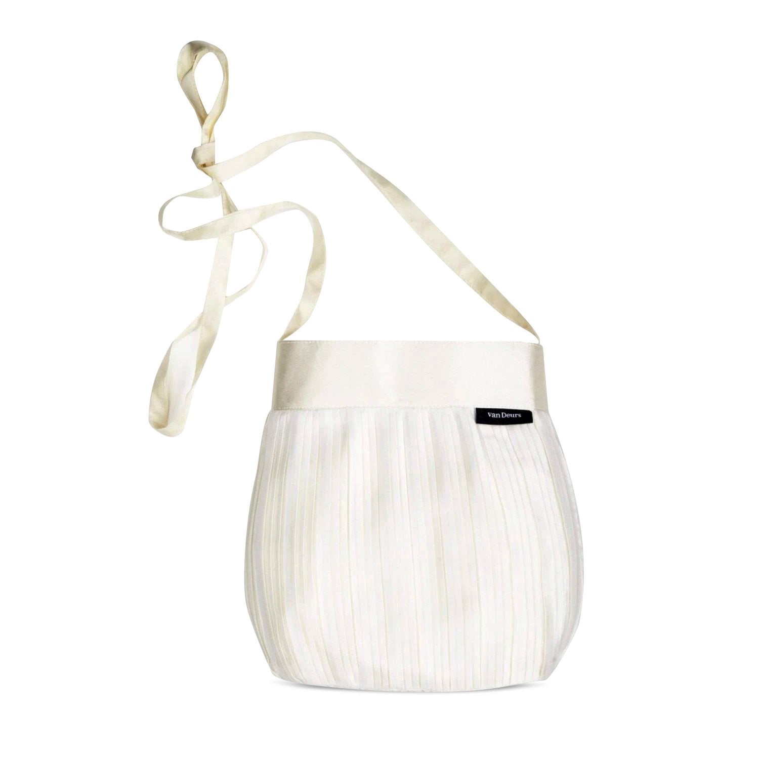 Small shoulder bag in ridge-pleated silk blend. Handmade in Sweden.