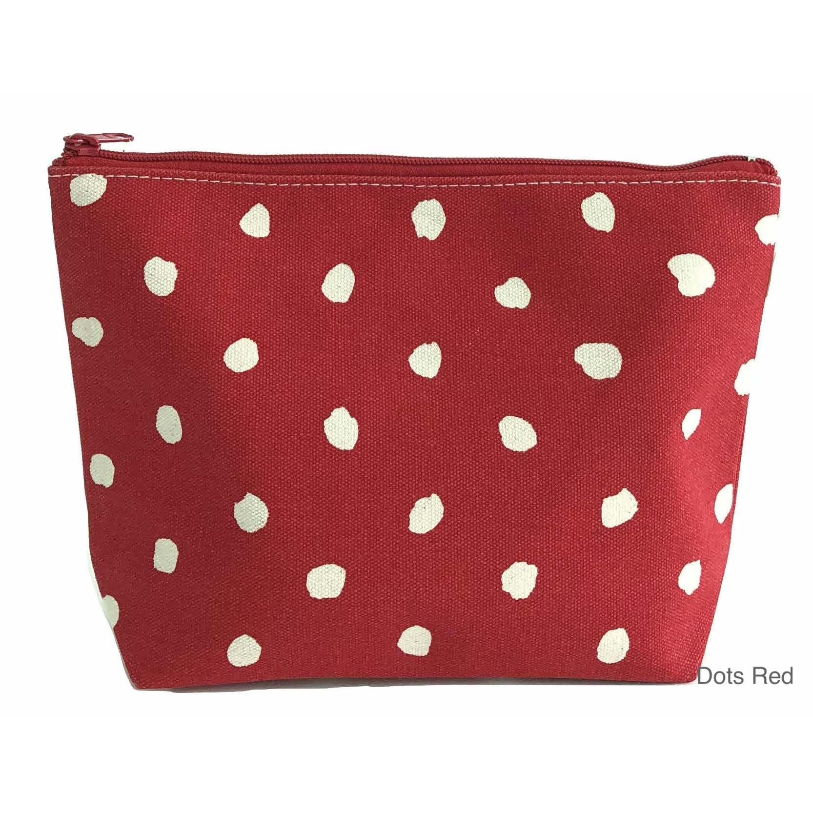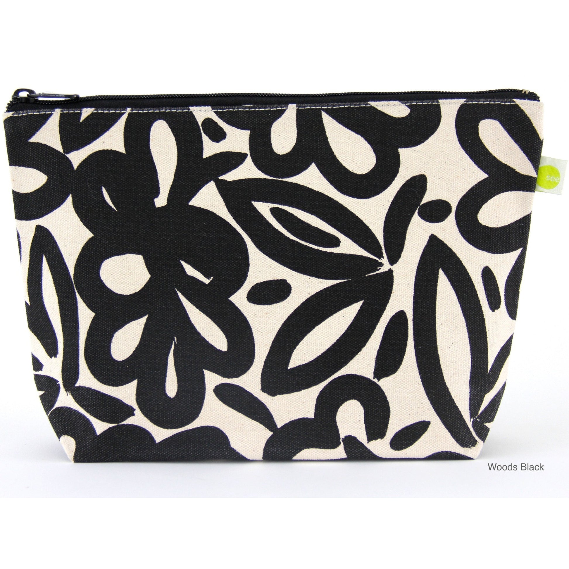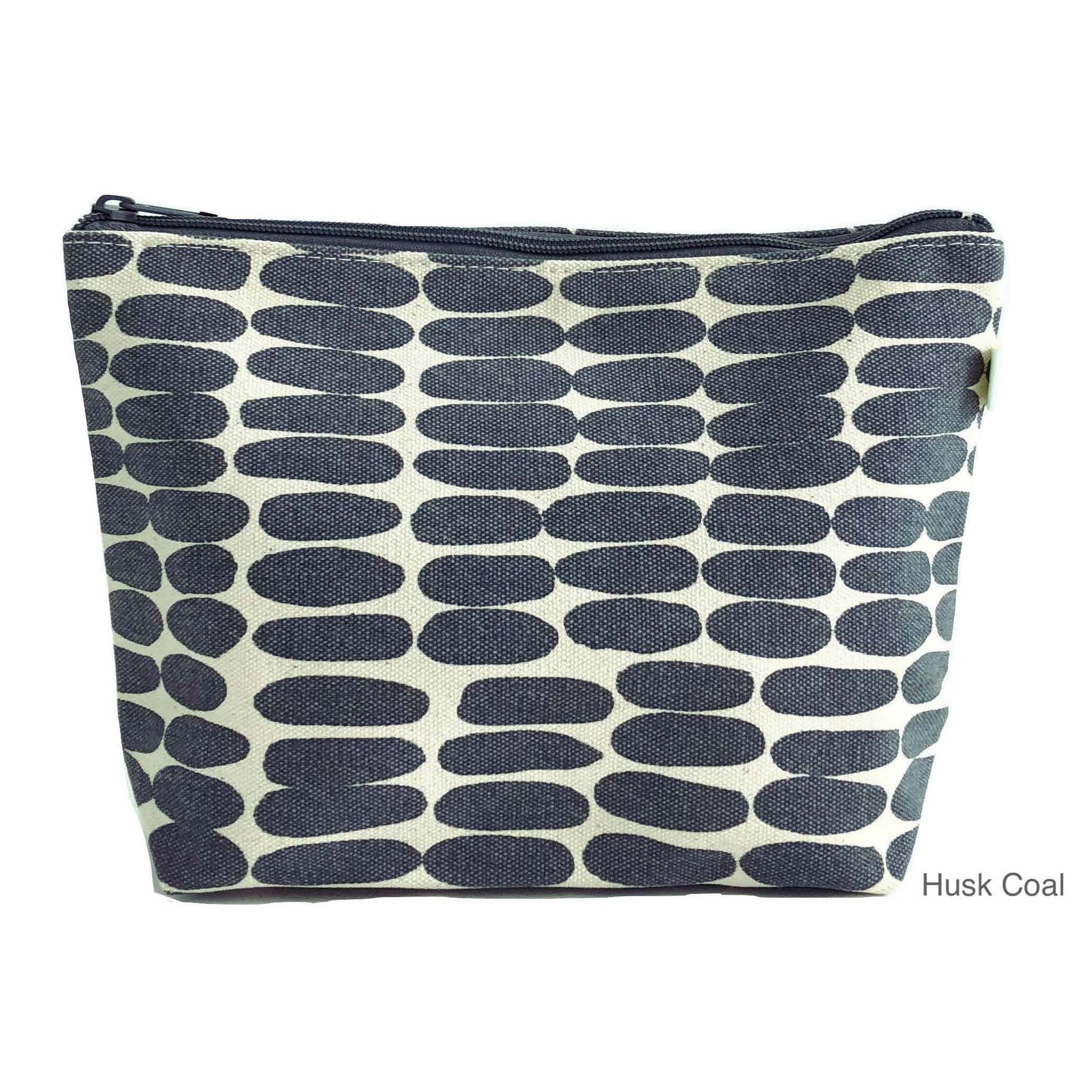 The large travel pouch is designed to hold all of the essentials when you're on the go. It features a 100% cotton canvas exterior and a nylon lining with a top zipper for easy access.