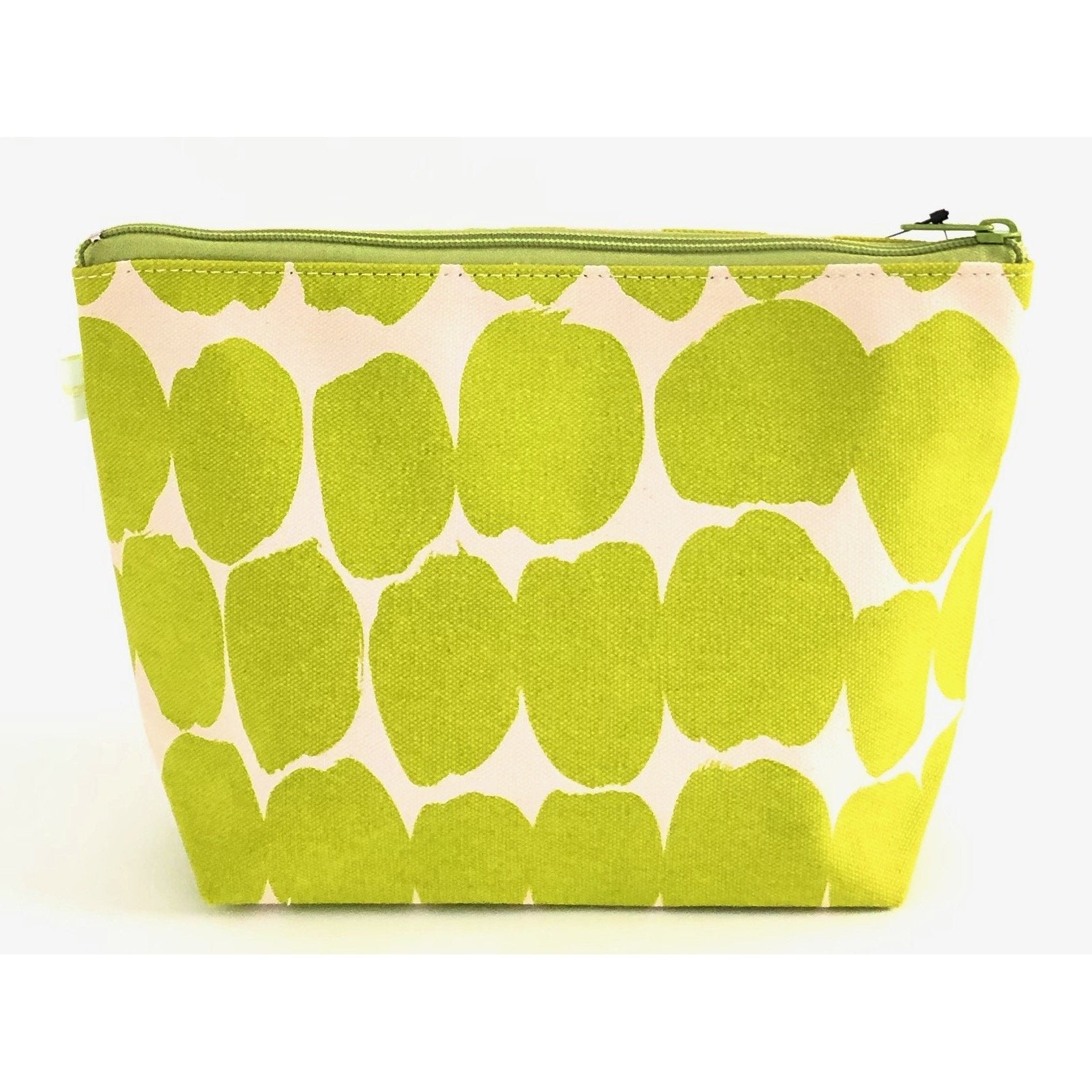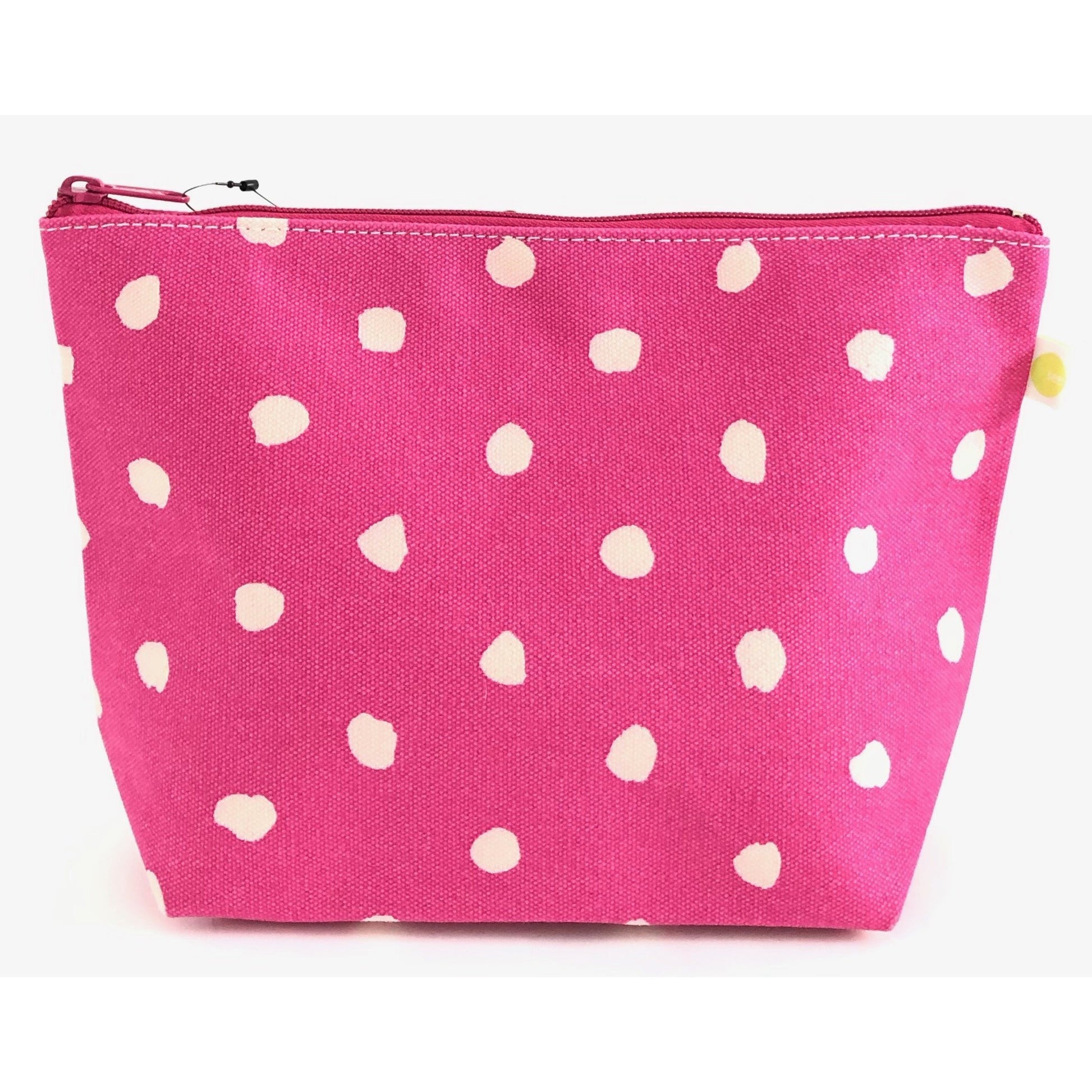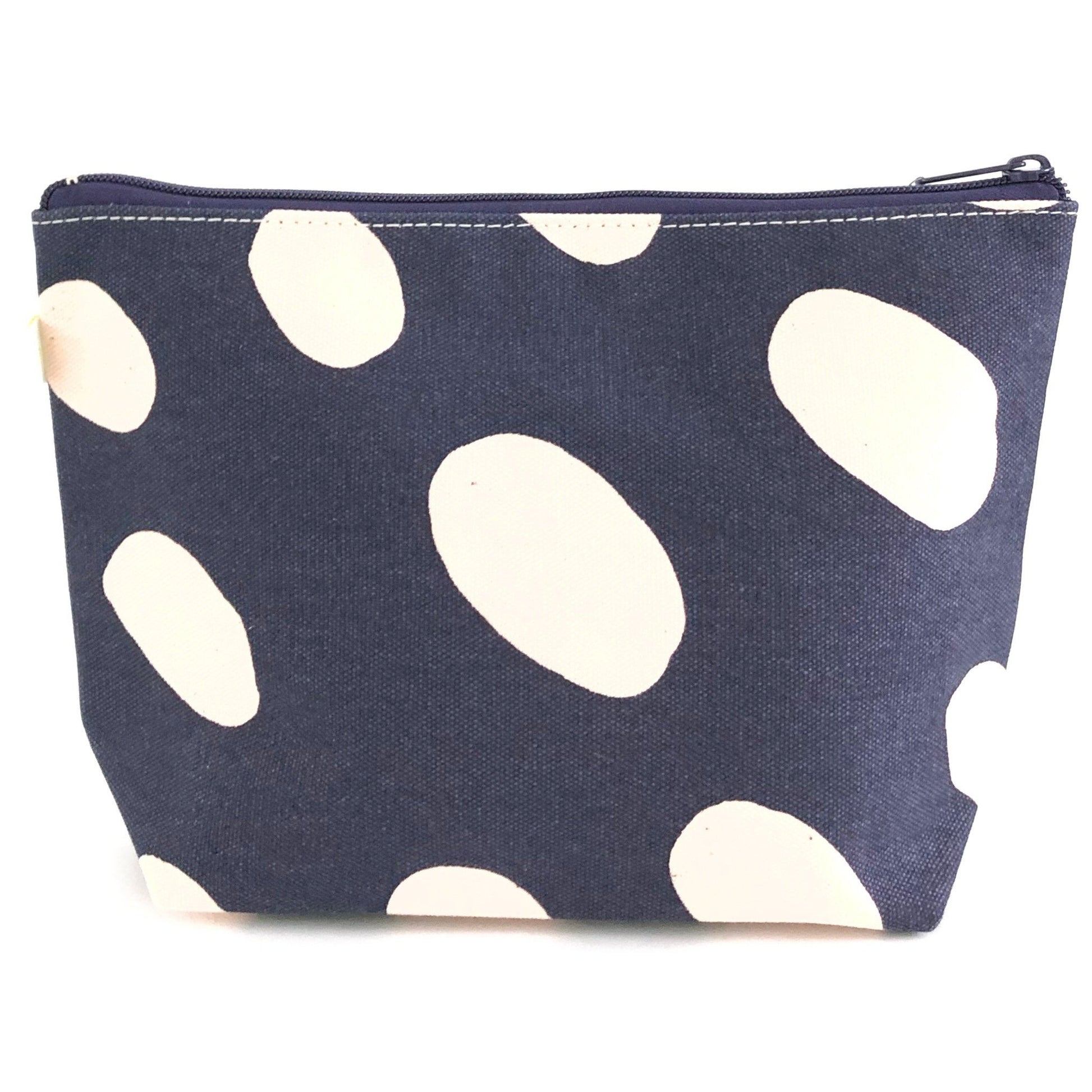The large travel pouch is designed to hold all of the essentials when you're on the go. It features a 100% cotton canvas exterior and a nylon lining with a top zipper for easy access.